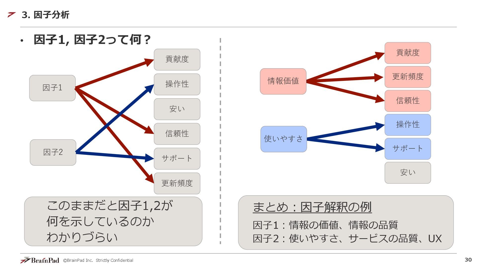 ©BrainPad Inc. Strictly Confidential 30 • 因子1, 因子2って何? 3. 因子分析