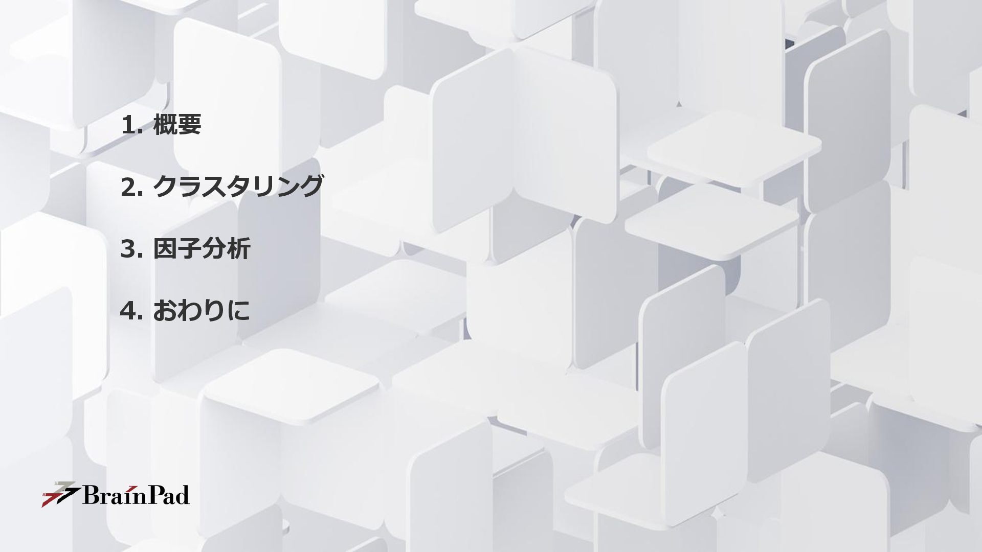 1. 概要 2. クラスタリング 3. 因子分析 4. おわりに