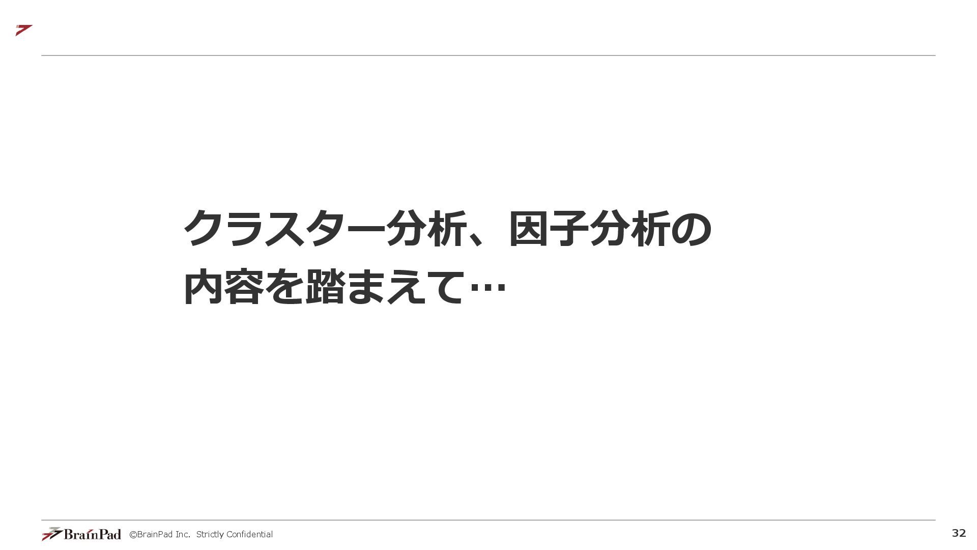 ©BrainPad Inc. Strictly Confidential 32 クラスター分析、因子分析の 内容を踏まえて…