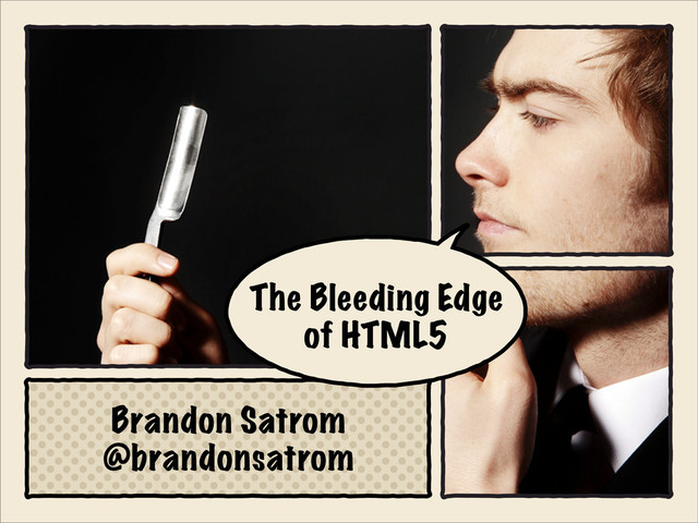 An overview of the most bleeding of edges to HTML, CSS and JavaScript. Featuring: JS Speech, CSS Custom Filters, Responsive Images, Web Components and more!