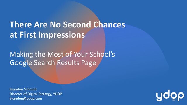Most of Your School’s Google Search Results Page Brandon Schmidt Director of Digital Strategy, YDOP [email protected]