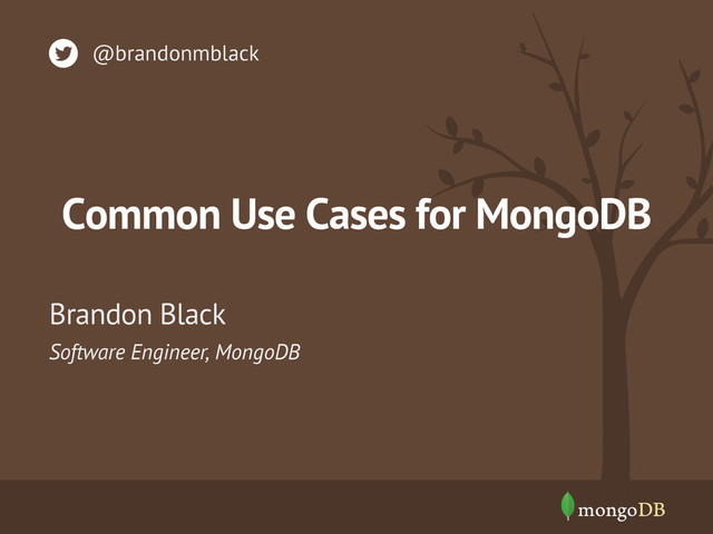 Sparse data • Semi-structured data • Agile development High Data Throughput • Reads • Writes Big Data • Aggregate Data Size • Number of Objects Low Latency • For reads and writes • Millisecond Latency Cloud Computing • Runs everywhere • No special hardware Commodity Hardware • Ethernet • Local data storage • JSON Based • Dynamic Schemas • Replica Sets to scale reads • Sharding to scale writes • 1000s of shards in a single DB • Data partitioning • Designed for “typical” OS and local file system • Scale-out to overcome hardware limitations • In-memory cache • Scale-out working set