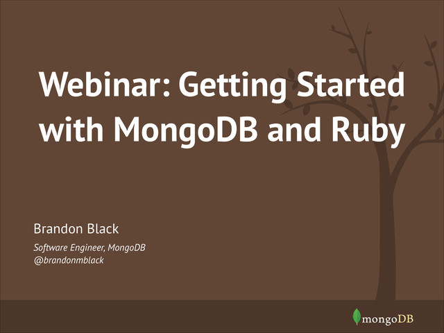 :username => 'brandonblack',! :first => 'brandon',! :last => 'black'! }! ! # inserting into my blog database! client['blog']['users'].insert(author) No database or collection creation required!