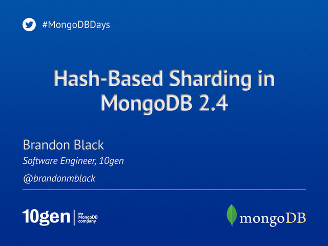 have an array value • Incompatible with tag aware sharding – Tags would be assigned the value of the hash, not the value of the underlying key • Key with poor cardinality is going to give a hash with poor cardinality – Floating point numbers are squashed. E.g. 100.4 will be hashed as 100