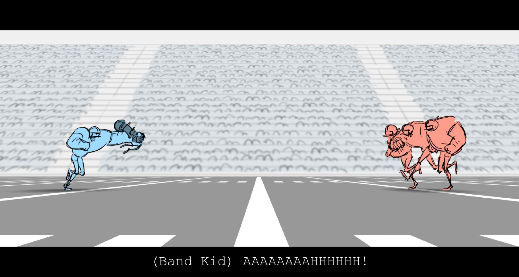 A band kid, now the substitute quarterback, finds himself in the crosshairs of the opposing football team.