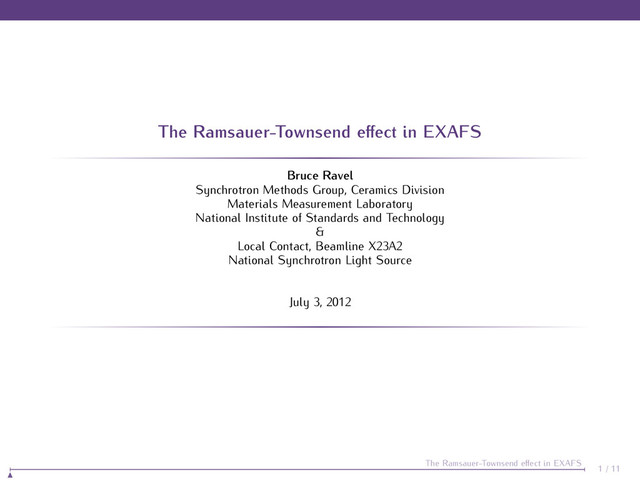 Ceramics Division Materials Measurement Laboratory National Institute of Standards and Technology & Local Contact, Beamline X23A2 National Synchrotron Light Source July 3, 2012 1 / 11 The Ramsauer-Townsend effect in EXAFS