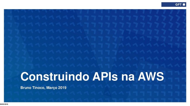 em Cloud (O que muda?) 26/03/2019 Type here if add info needed for every slide API Gateway API Backend Services API Consumer Uma solução de API em Cloud (AWS)