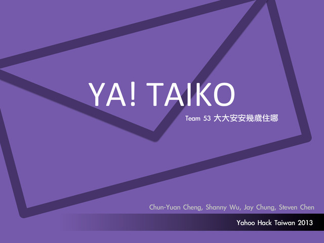 YA! TAIKO Yahoo Hack Taiwan 2013 Team 53 大大安安幾歲住哪 Chun-Yuan