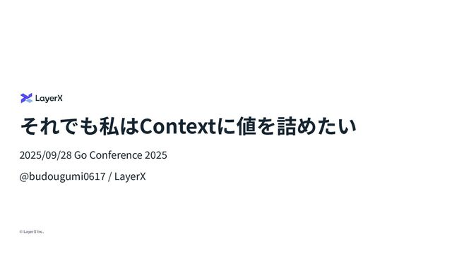 © LayerX Inc. それでも私はContextに値を詰めたい 2025/09/28 Go Conference 2025 @budougumi0617 /