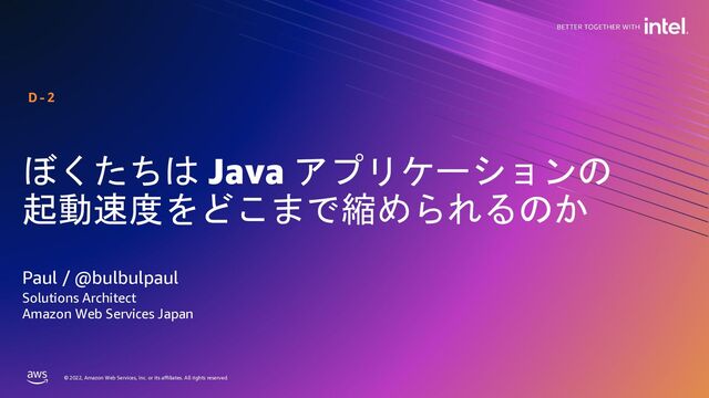 rights reserved. 起動速度のアプローチまとめ プラットフォームの スタートアップ ランタイムの スタートアップ アプリケーションの スタートアップ アプリケーションの ウォームアップ ① プラットフォーム個別の 最適化 ② アプリケーション起動の最適化 ③ ピークパフォーマンスまでの最適化