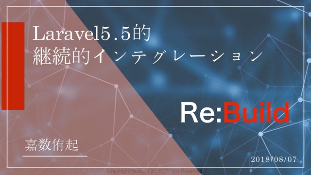 Copyright Re:Build.inc All Rights Reserved. Laravel5.5的 ܧଓ的インテグレʔション 嘉侑起 2018/08/07 3F#VJME