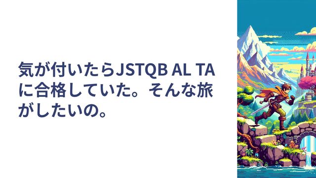 JaSST nano vol.36(https://jasst-nano.connpass.com/event/316558/) にて発表した資料です。 JSTQB Advanced Level Test Analyst 試験に開発寄りの人間が合格するためにした勉強方法などを共有します