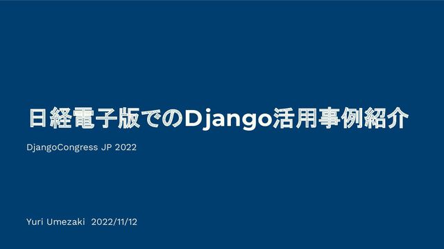 日経電子版でのDjango活用事例紹介 DjangoCongress JP 2022 Yuri Umezaki 2022/11/12