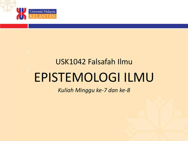 kerana keterbatasan daya indera manusia. • Terdapat suatu ideologi ekstrim dalam memperjuangkan kebenaran empiris (mazhab empirisisme). Antara pelopor utama mazhab ini ialah David Hume, John Locke, dan Roger Bacon. • Mereka berpendapat ilmu hanya datang dari fakta-fakta alam yang boleh ditanggapi oleh pancaindera zahir. Keupayaan yang di luar batas pancaindera zahir dianggap tidak bermakna dan bukan fakta. Justeru, ia tidak termasuk dalam sumber ilmu atau bidang ilmu. 1. Pancaindera