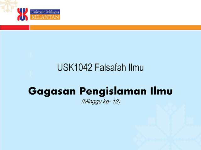 & pendekatan • Al-Attas • Ismail al-Faruqi • Taha Jabir al-Alwani • IFIAS •ASASI kritikan respon umat Islam alternatif Kenapa perlu ??? • Ilmu moden tidak neutral • Ilmu moden sarat denga nilai Barat • Faham ilmu, faham nilai dan konsep kebudayaan dipengaruhi perspektif Barat