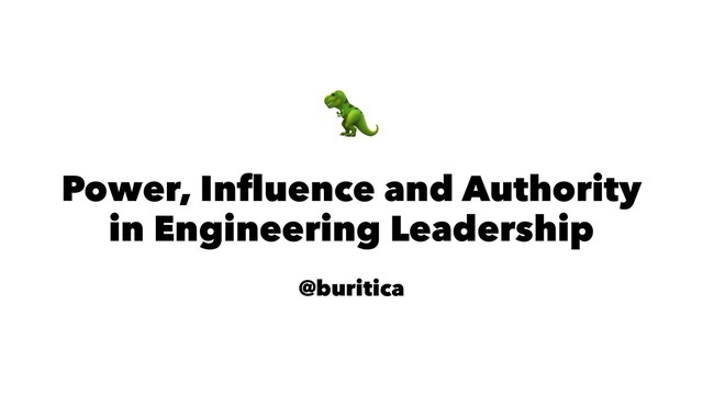 This talk explores different challenges that engineering teams have through the lens of power, influence or authority from the perspective of engineers or managers. If you've ever wondered if you should step into management, this talk can give you some insight into the right tool or role needed to be an agent for positive change. After this talk, you should have a better idea of whether making the management career change can give you the tools you need to grow and help others in the process.
