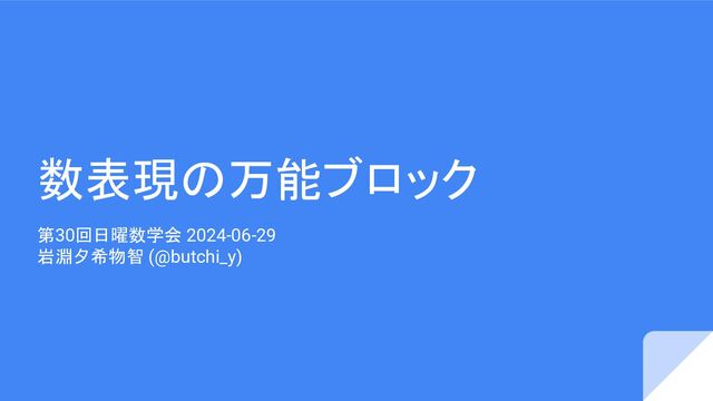 第30回日曜数学会 2024-06-29 「数表現の万能ブロック」