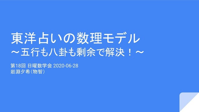 第18回 日曜数学会「東洋占いの数理モデル 〜五行も八卦も剰余で解決!〜」