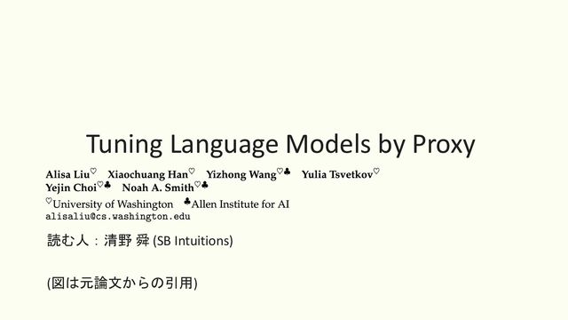 anti-expert” (the sma the expert and the ant model, to guide it in the scale. The logits show LLA M A 2-7B (from top Figure 1: Proxy-tuning “ tunes” a large weights, by steering it using an “ expert “ anti-expert” (the small model, untuned the expert and the anti-expert is applied Figure 1: Proxy-tuning “ tunes” a large pretrained model without ac weights, by steering it using an “ expert” (a small tuned model) and ポイント① 補正は毎時刻 必要 ポイント② 語彙の一致を 仮定 これのfinetuning を サボりたい