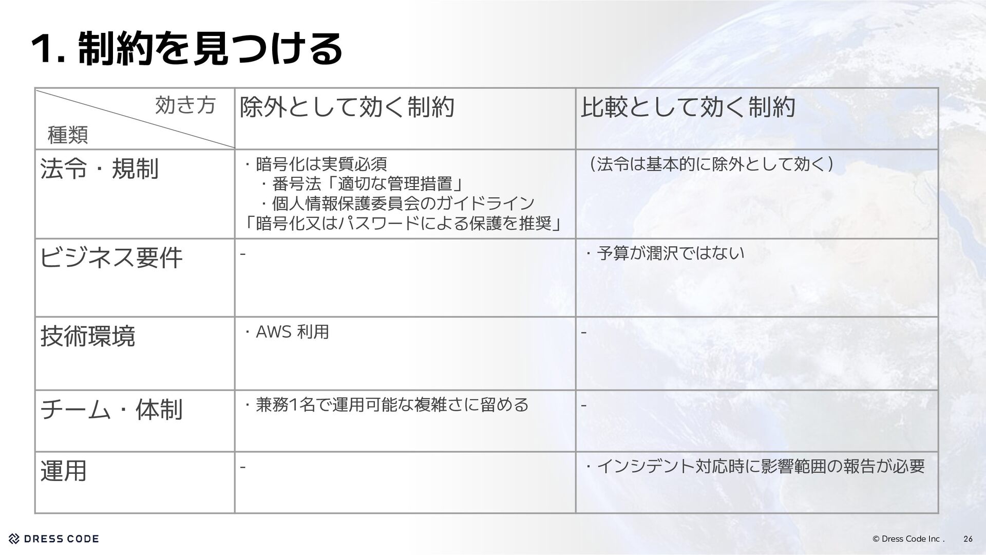 15. © Dress Code Inc . 26 1. 制約を見つける 除外として効く制約 比較として効く制約