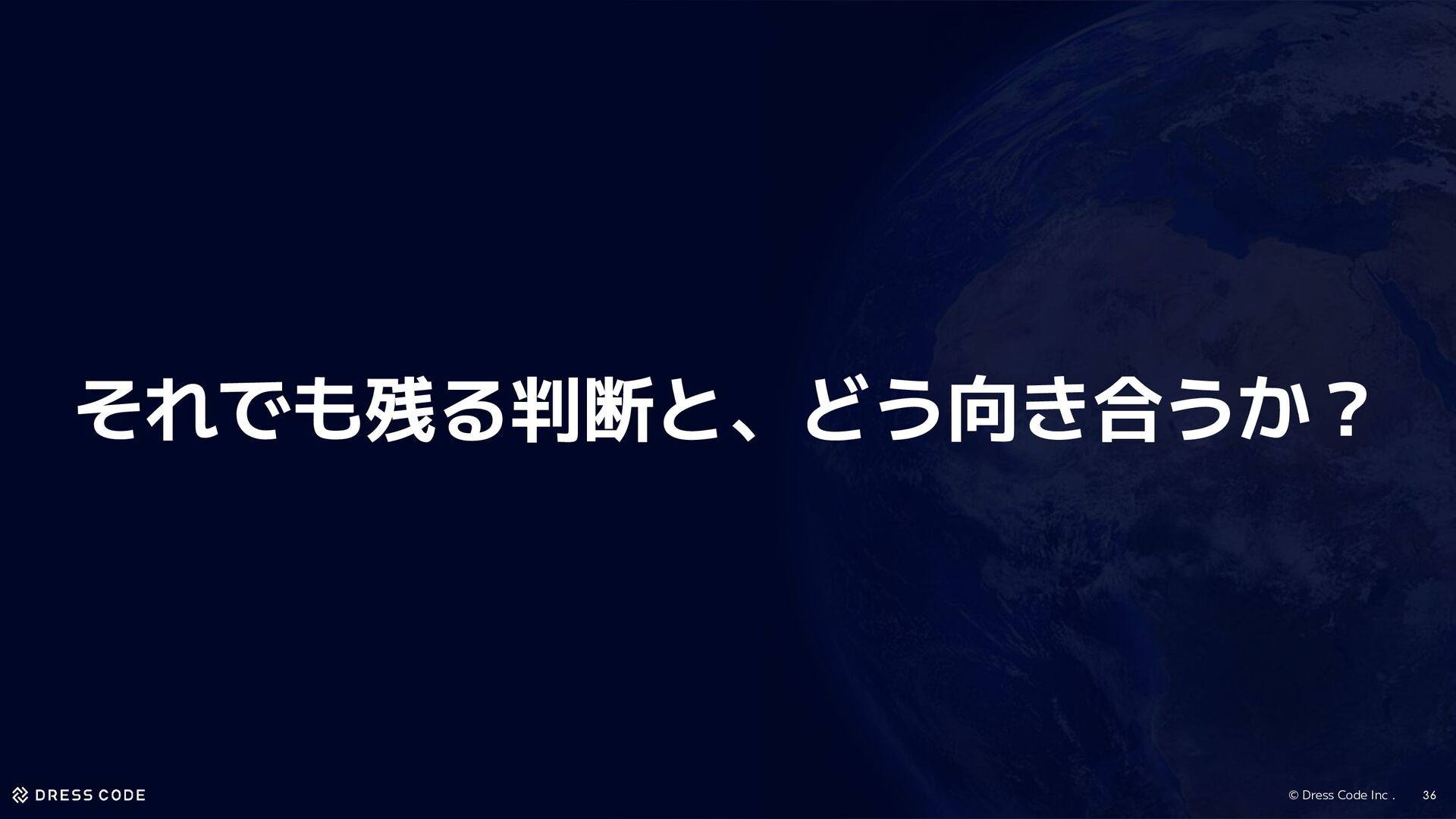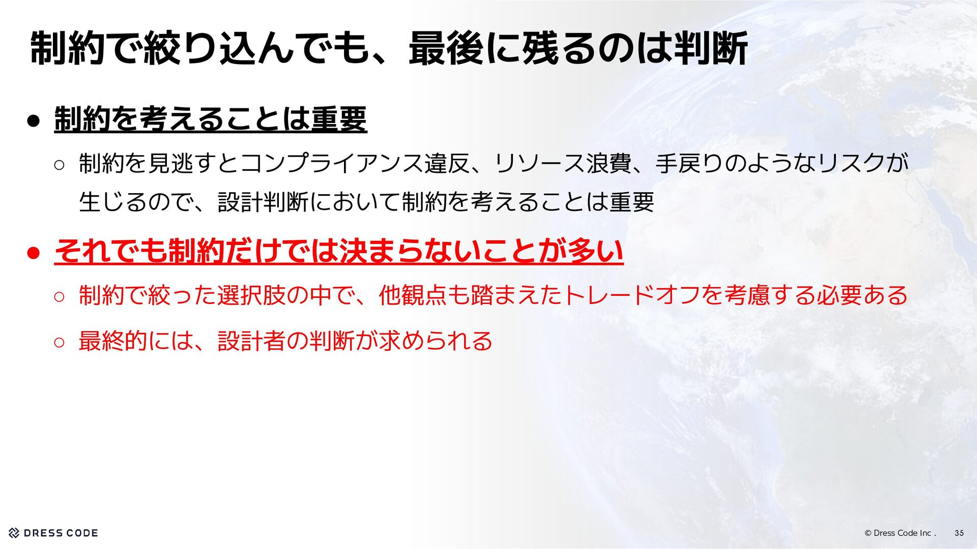 24. © Dress Code Inc . 35 制約で絞り込んでも、最後に残るのは判断 • 制約を考えることは重要 ◦
