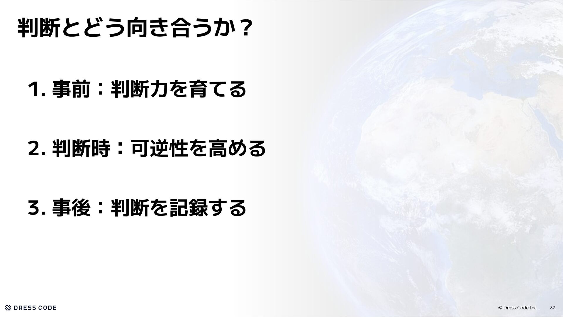 25. © Dress Code Inc . 1. 事前:判断力を育てる 2. 判断時:可逆性を高める 3.