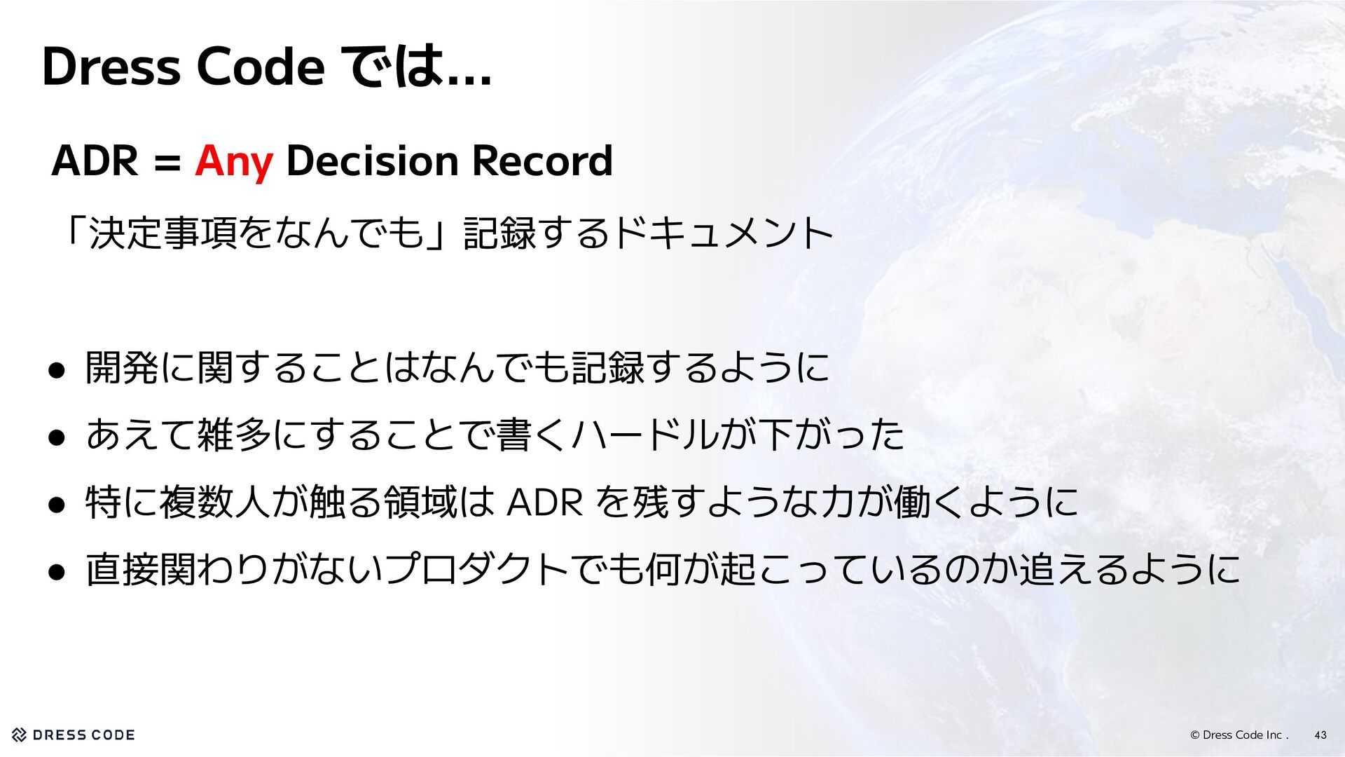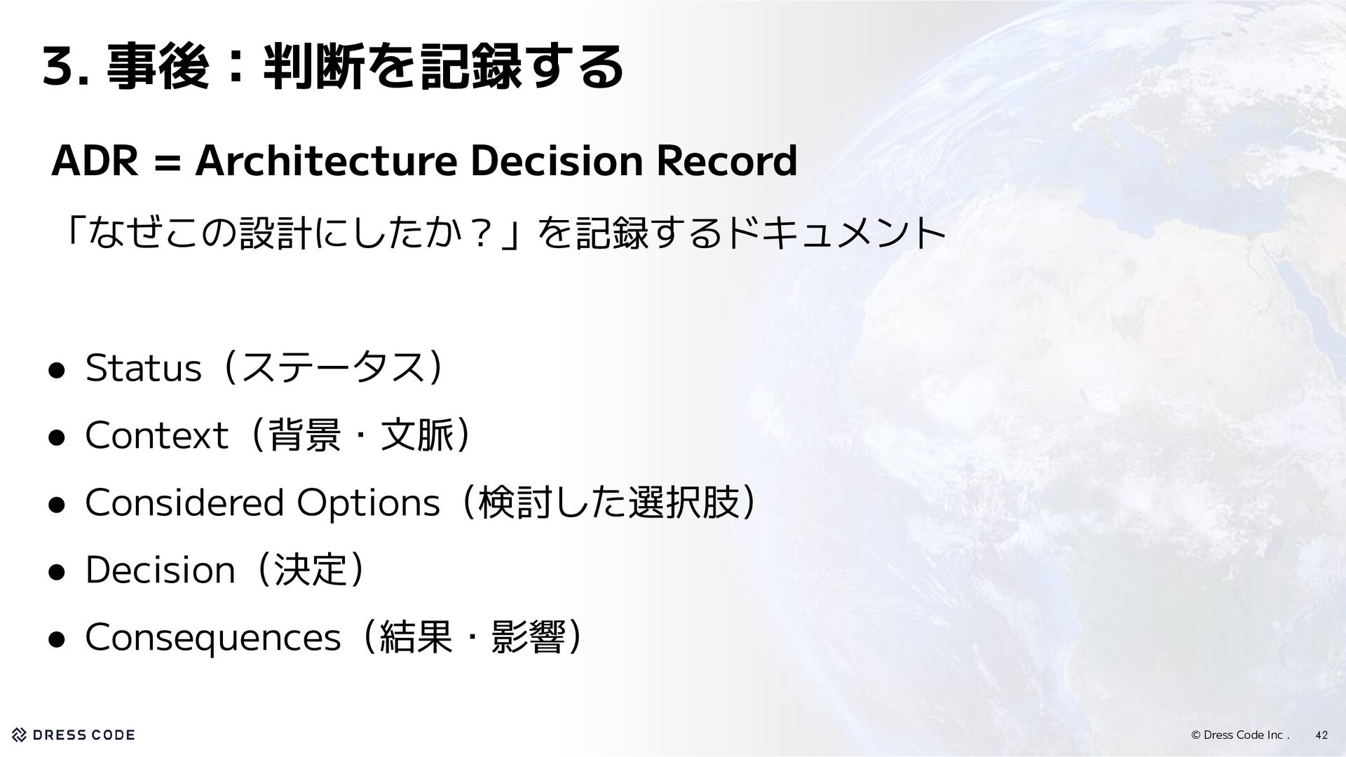 29. © Dress Code Inc . 42 3. 事後:判断を記録する ADR =