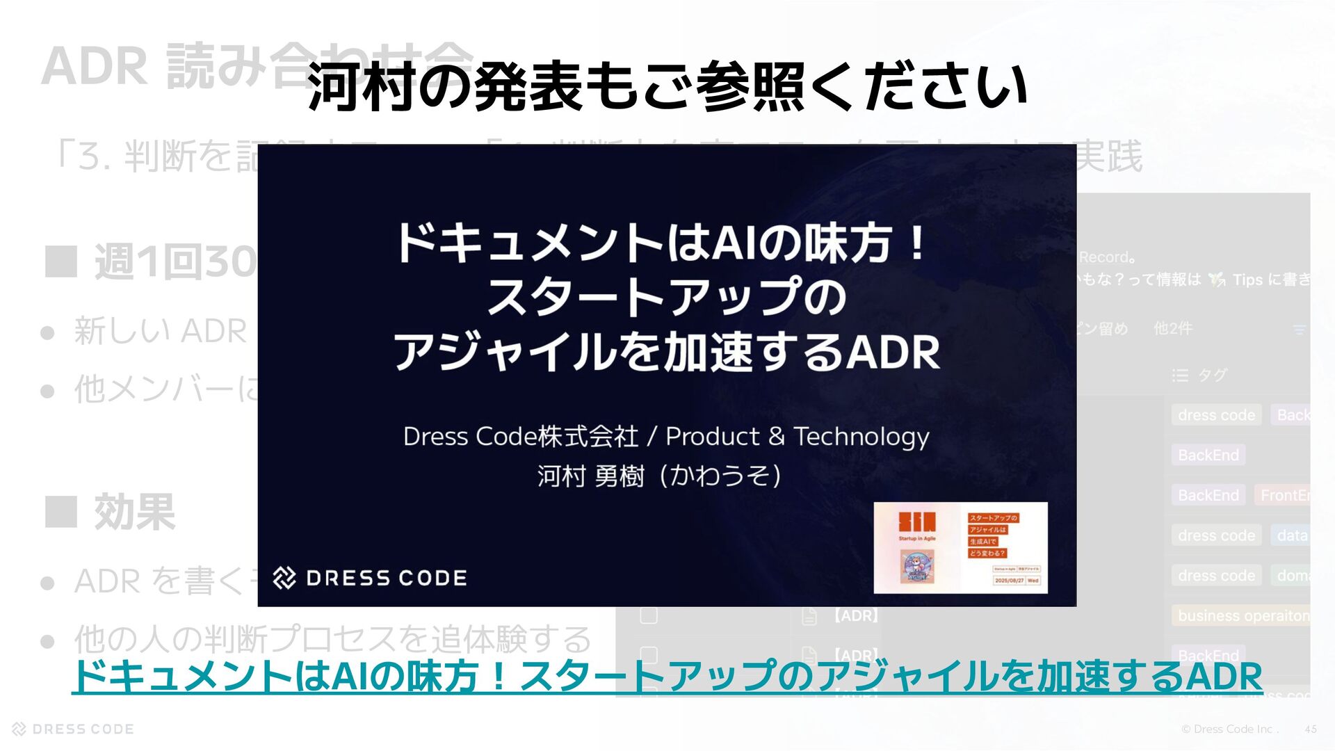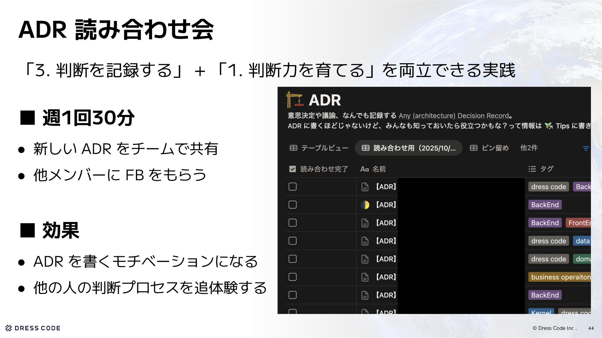 31. © Dress Code Inc . 44 ADR 読み合わせ会 「3. 判断を記録する」