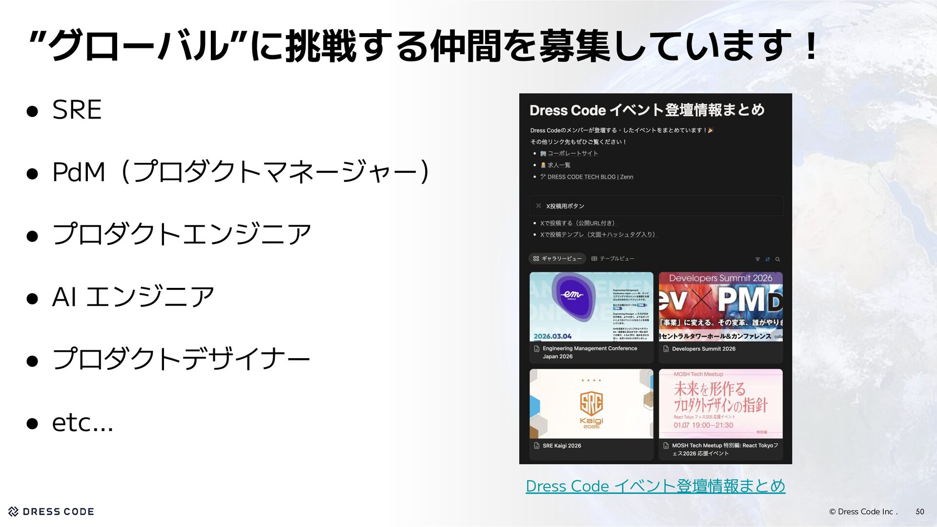 35. © Dress Code Inc . 50 ”グローバル”に挑戦する仲間を募集しています! • SRE •
