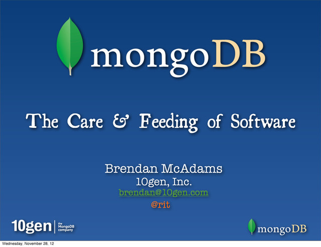 – be it text files, user form input, emails, etc • But what does software excrete? • More Data, of course... • This data gets bigger and bigger • The solutions become narrower for storing & processing this data • Data Fertilizes Software, in an endless cycle... Wednesday, November 28, 12