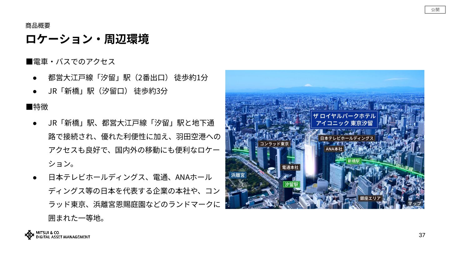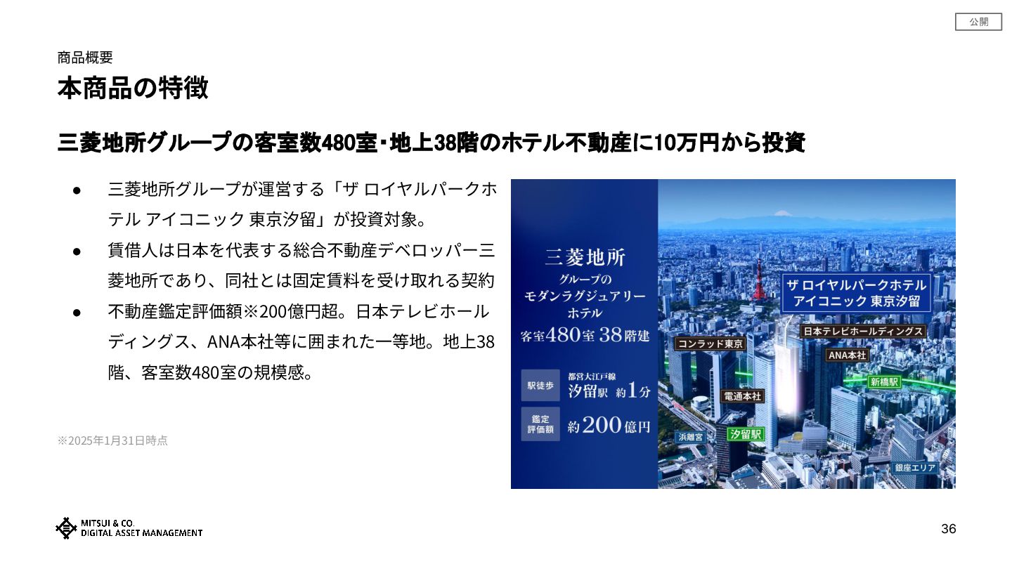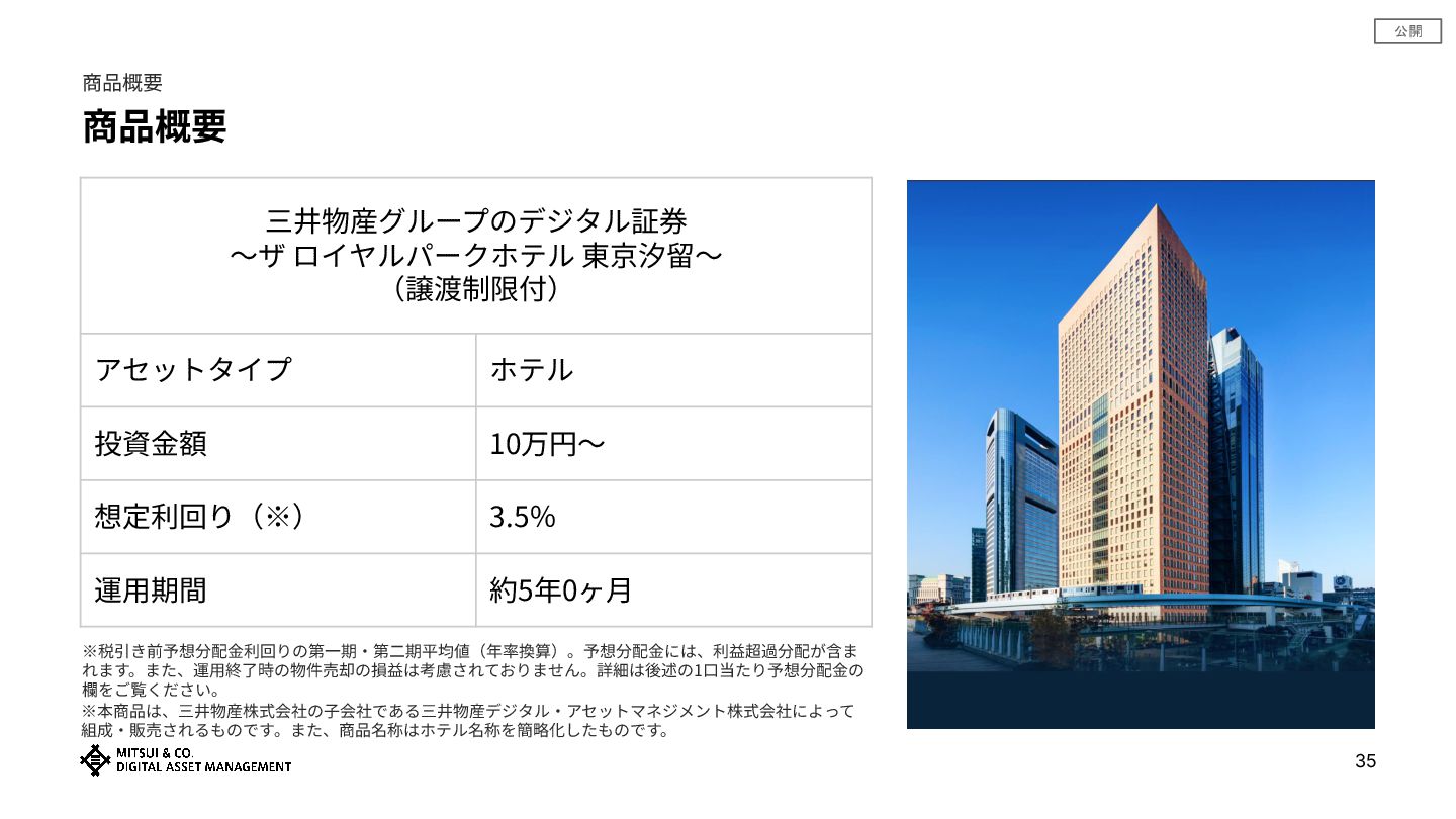 公開 35 商品概要 商品概要 三井物産グループのデジタル証券 〜ザ ロイヤルパークホテル 東京汐留〜 (譲渡制限付) アセットタイプ