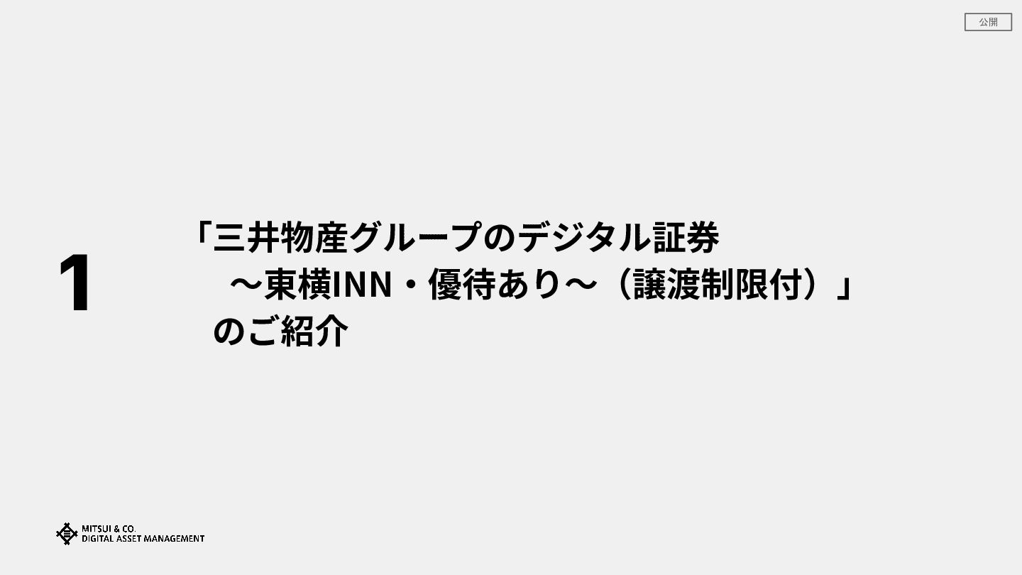 公開 1 「三井物産グループのデジタル証券 〜東横INN‧優待あり〜(譲渡制限付)」 のご紹介