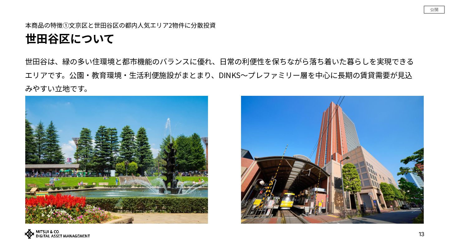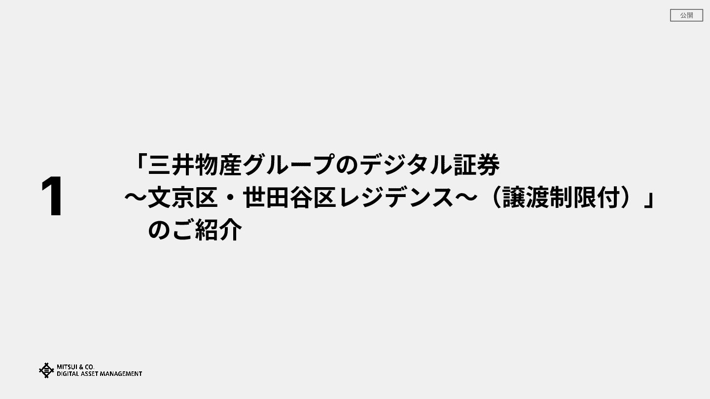 公開 1 「三井物産グループのデジタル証券 〜⽂京区‧世⽥⾕区レジデンス〜(譲渡制限付)」 のご紹介