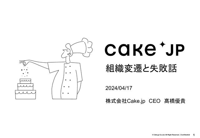 1 © Cake.jp Co.Ltd. All Right Reserved.|Confidential 組織変遷と失敗話 2024/04/17 株式会社Cake.jp CEO 髙橋優貴