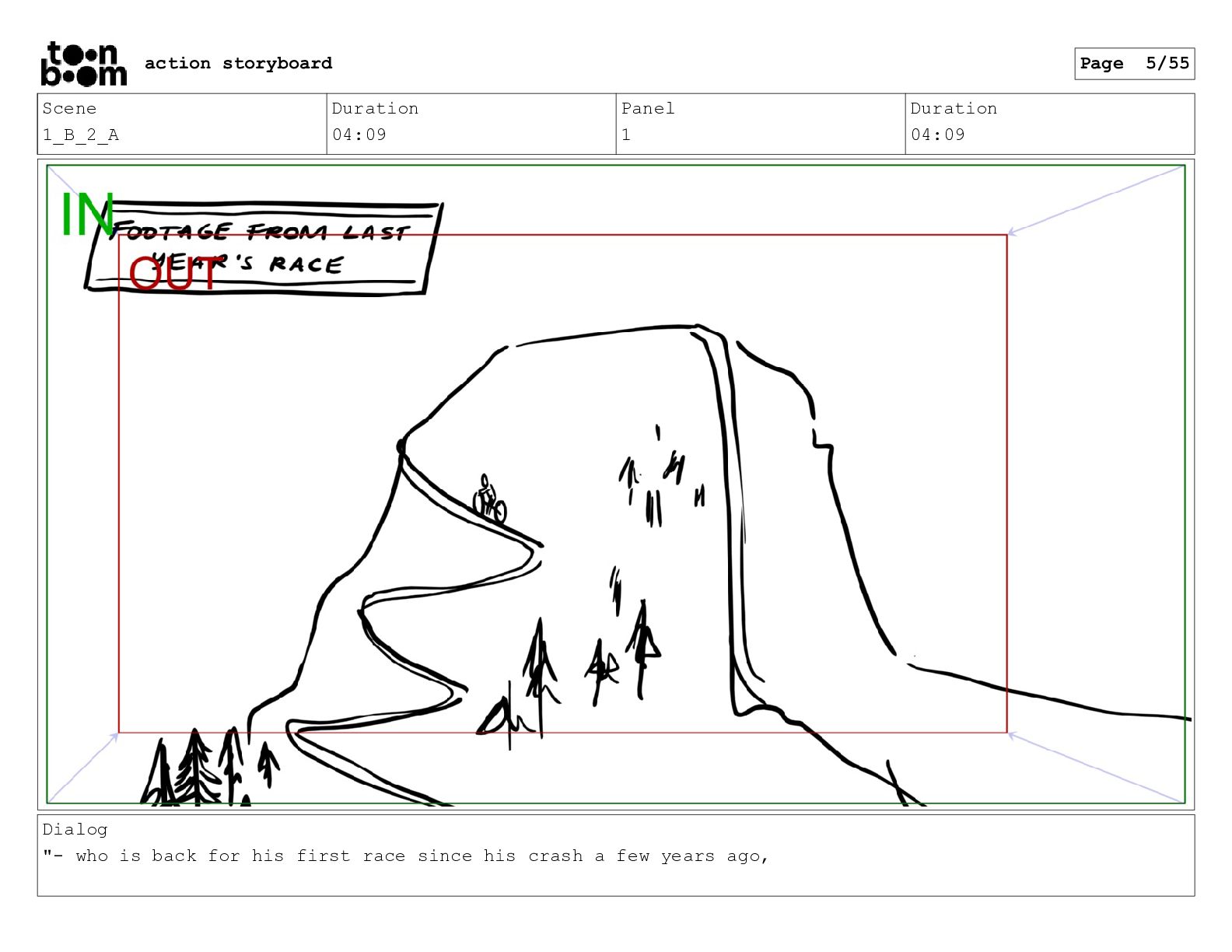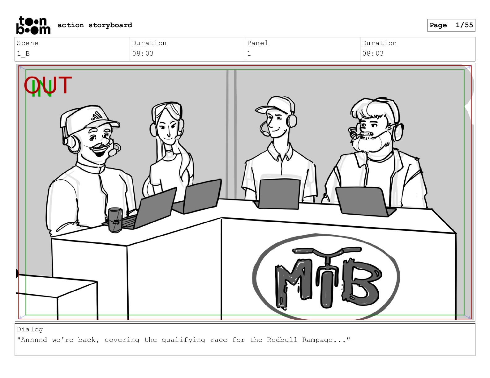 we're back, covering the qualifying race for the Redbull Rampage..." action storyboard Page 1/55