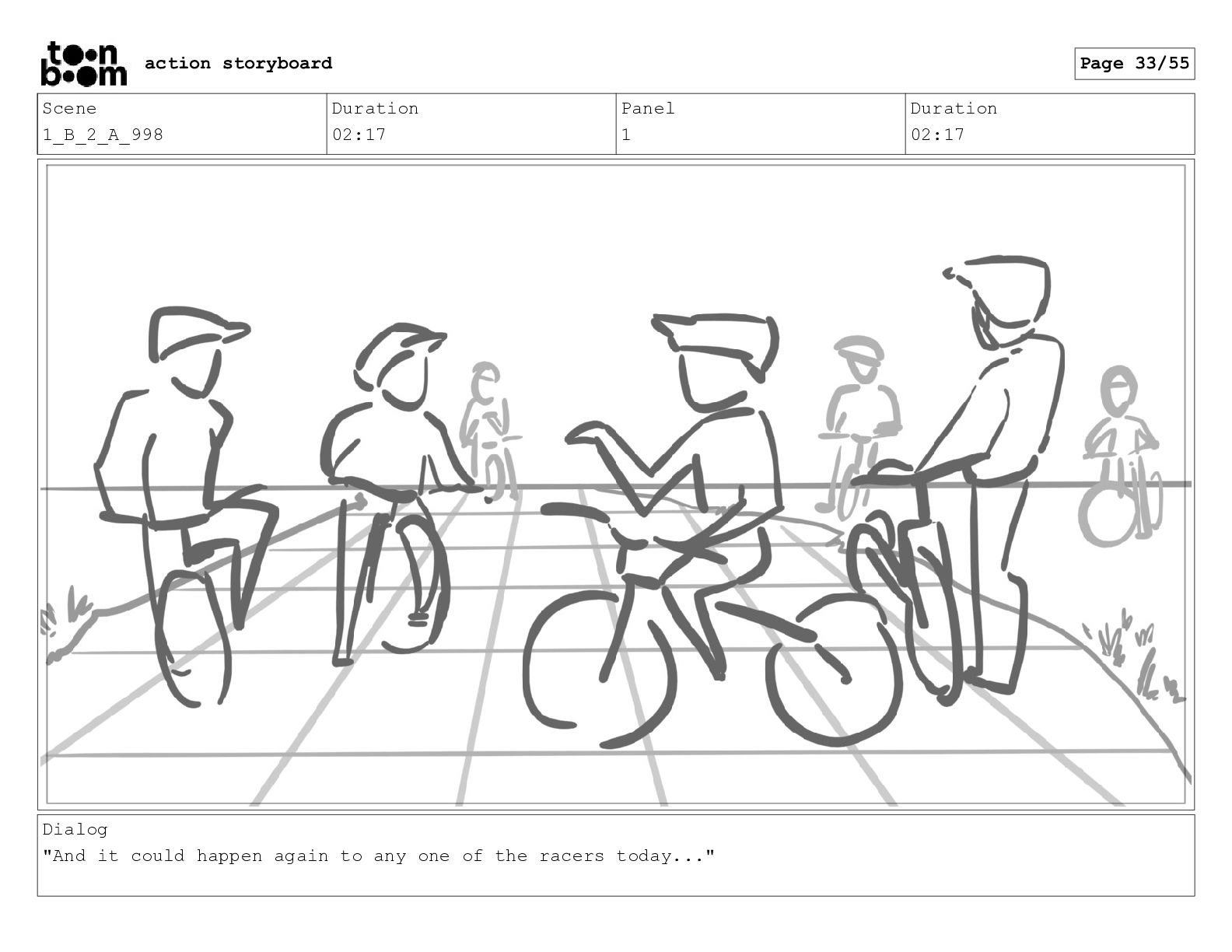 it could happen again to any one of the racers today..." action storyboard Page 33/55
