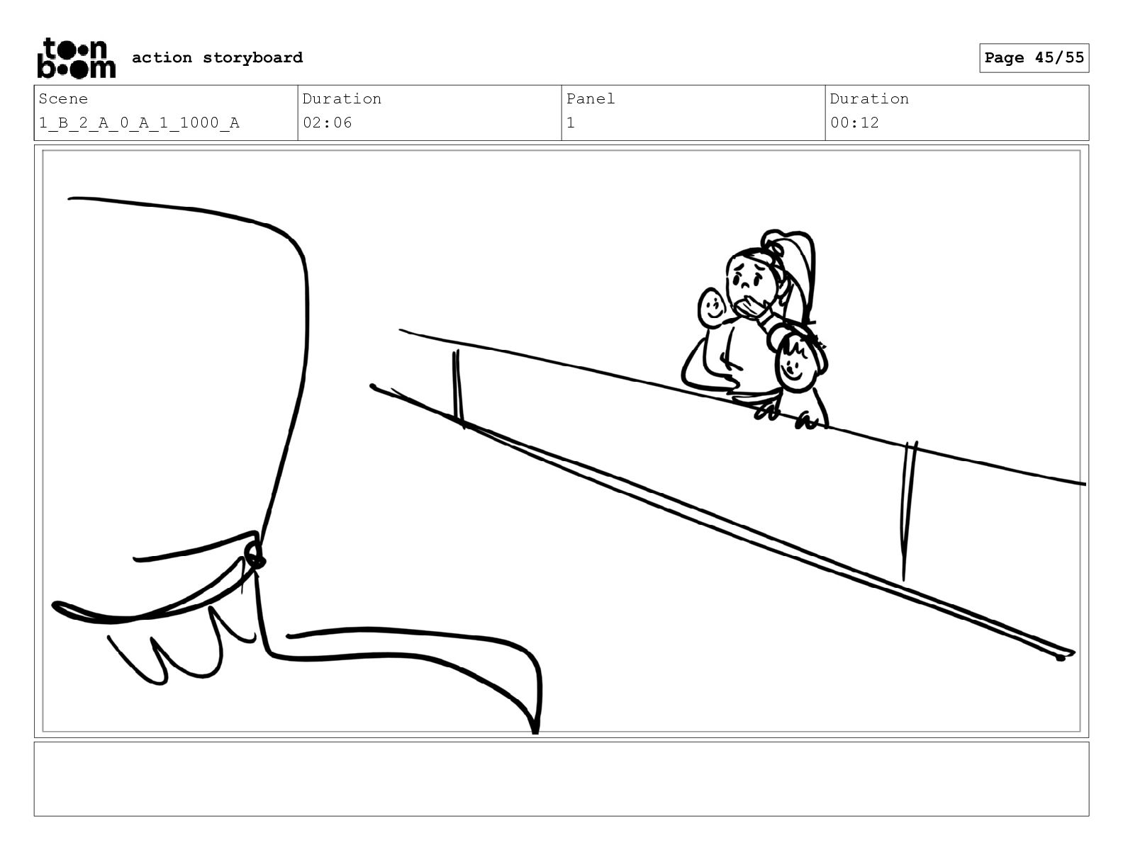 Scene 1_B_2_A_0_A_1_1000_A Duration 02:06 Panel 1 Duration 00:12 action storyboard