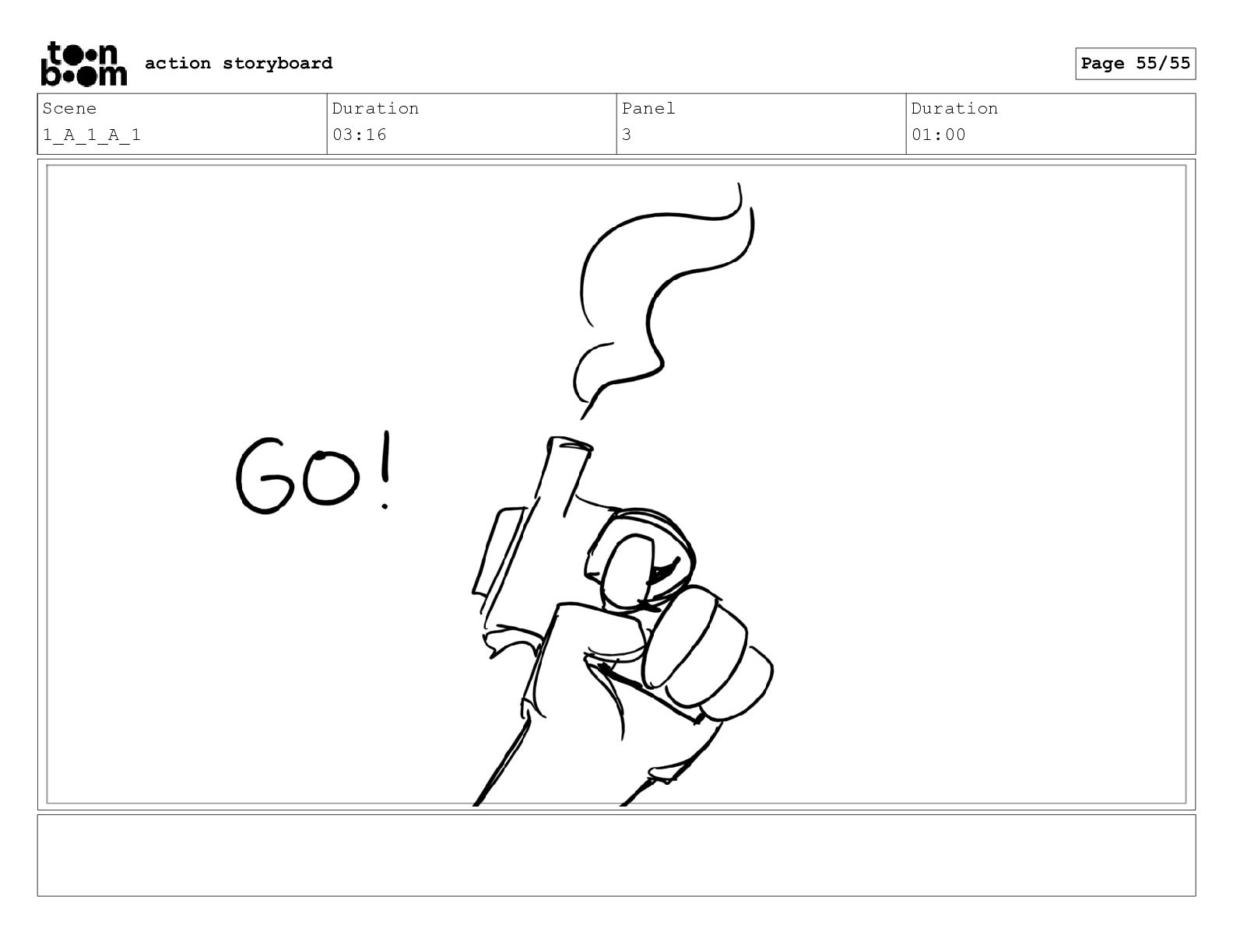Scene 1_A_1_A_1 Duration 03:16 Panel 3 Duration 01:00 action storyboard