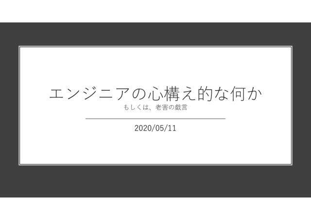エンジニアの心構え的な何か もしくは、老害の戯言 2020/05/11