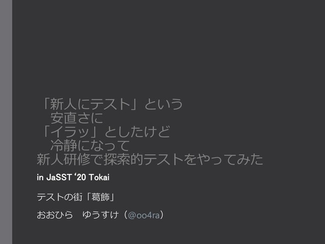 「新人にテスト」という 安直さに 「イラッ」としたけど 冷静になって 新人研修で探索的テストをやってみた in JaSST‘20 Tokai テストの街「葛飾」 おおひら