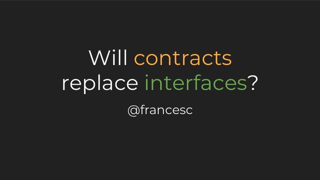 methods, contracts on anything. → all interfaces can be represented as contracts contract Stringer(x T) { type Stringer interface { var s string = x.String() String() string } } Interfaces vs Contracts