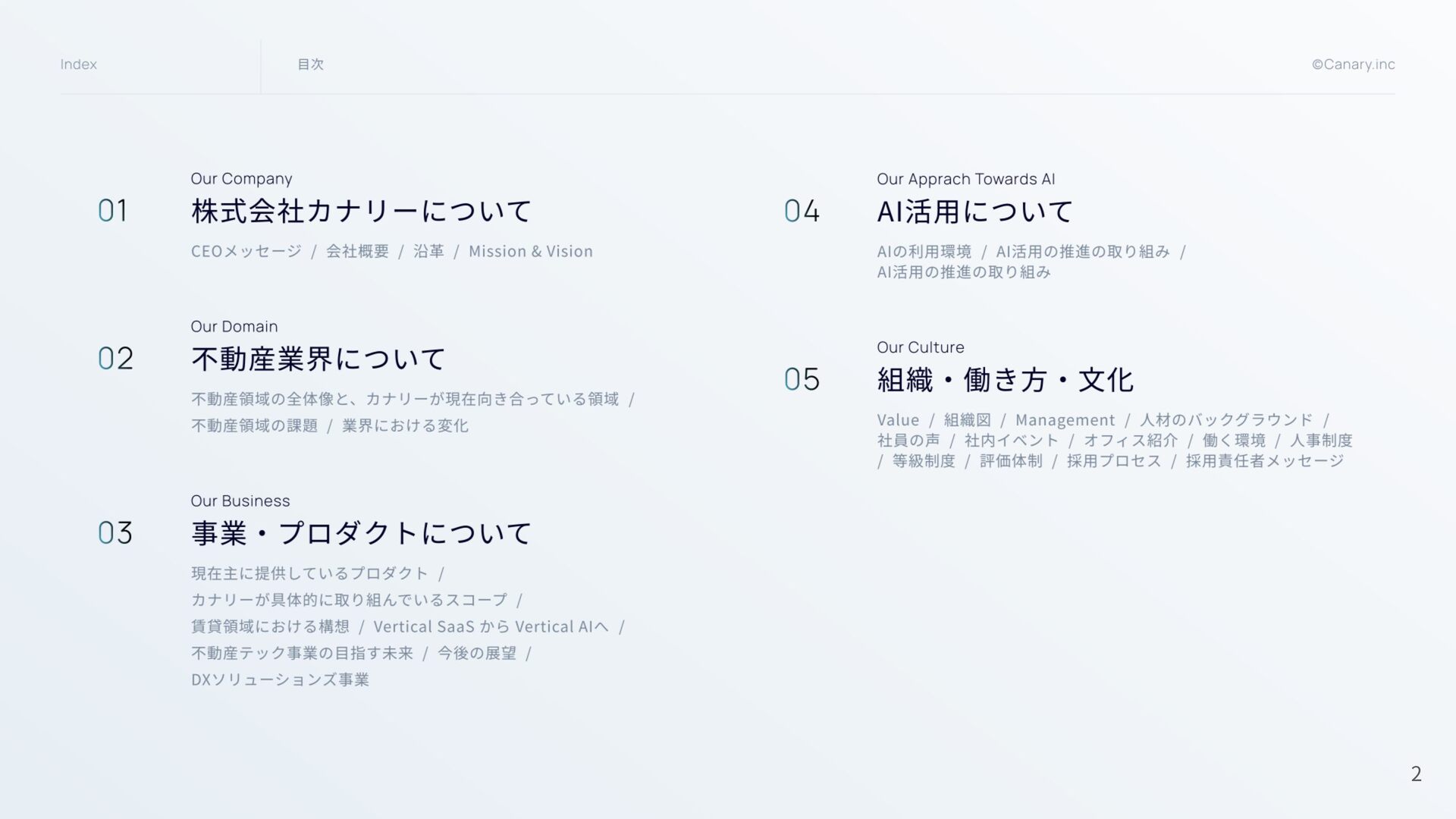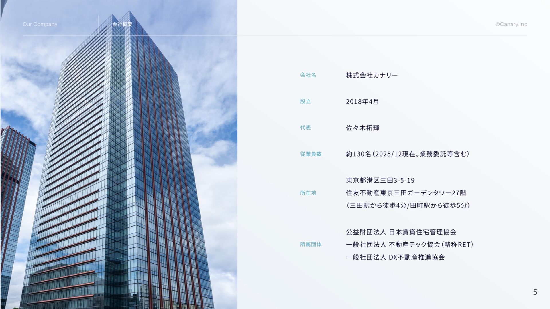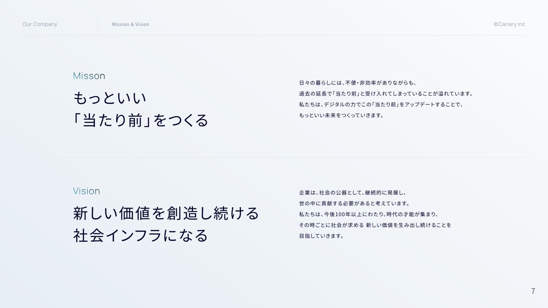 株式会社カナリーの会社紹介資料(Company Deck)です。