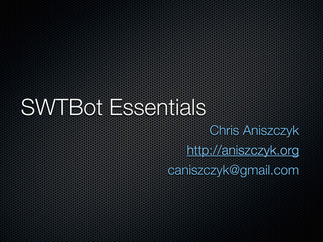 bot.[widget][With][Matcher(s)](); SWTBotText text = bot.textWithLabel("Username:"); Think of the bot as something that can do tasks for you (e.g., find widgets, click on them, etc.)