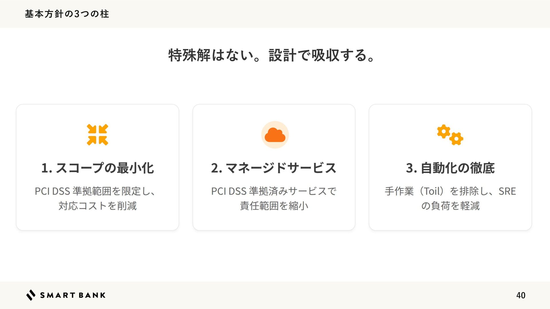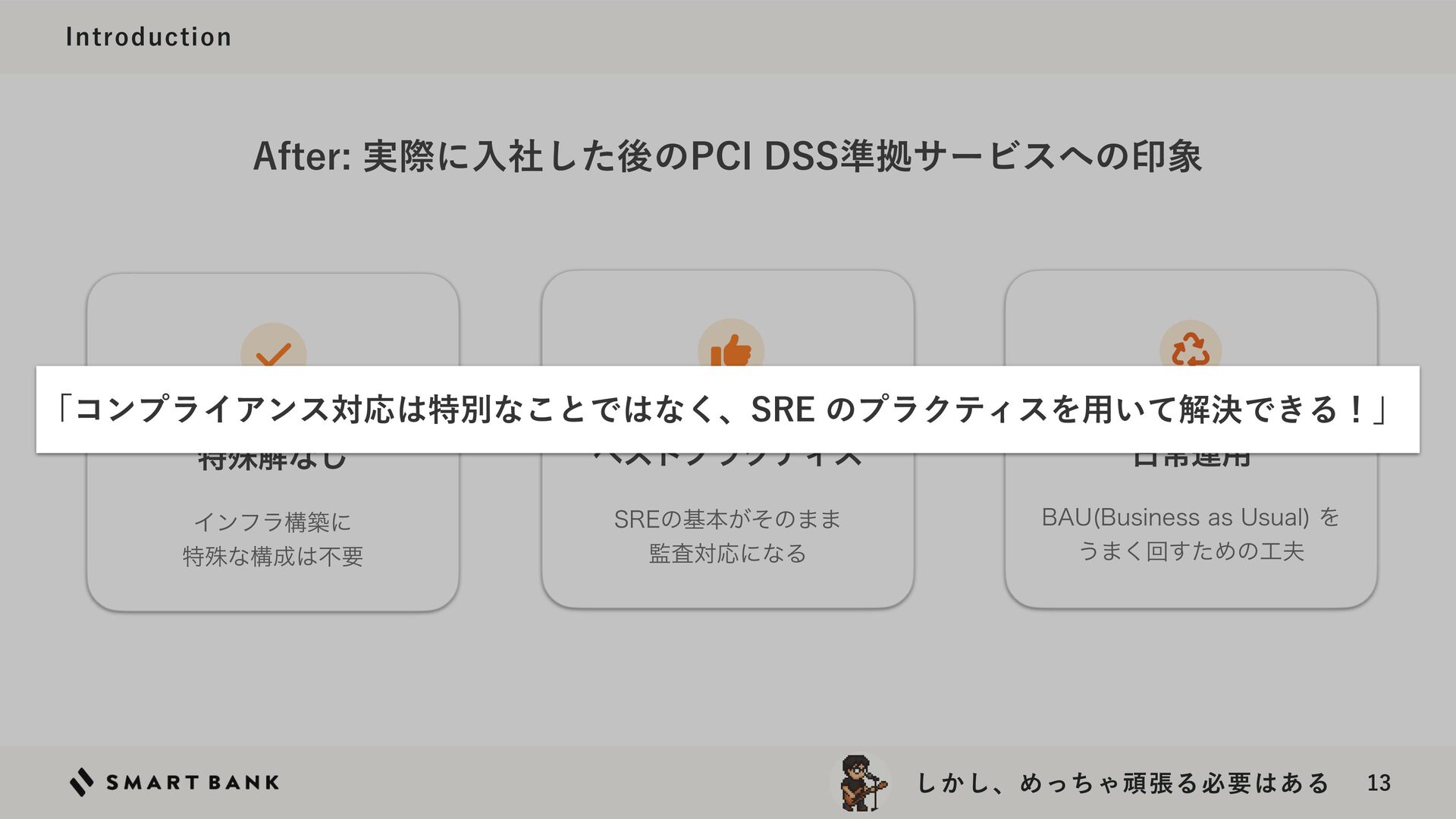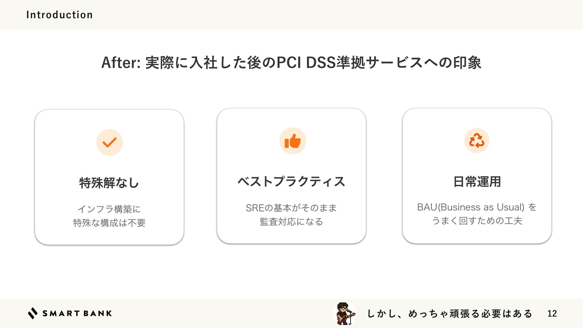*OUSPEVDUJPO "GUFS࣮ࡍʹೖࣾͨ͠ޙͷ1$*%44४ڌαʔϏεͷҹ ಛघղͳ͠ Πϯϑϥߏஙʹ ಛघͳߏෆཁ ϕετϓϥΫςΟε 43&ͷجຊ͕ͦͷ·· ࠪରԠʹͳΔ ৗӡ༻