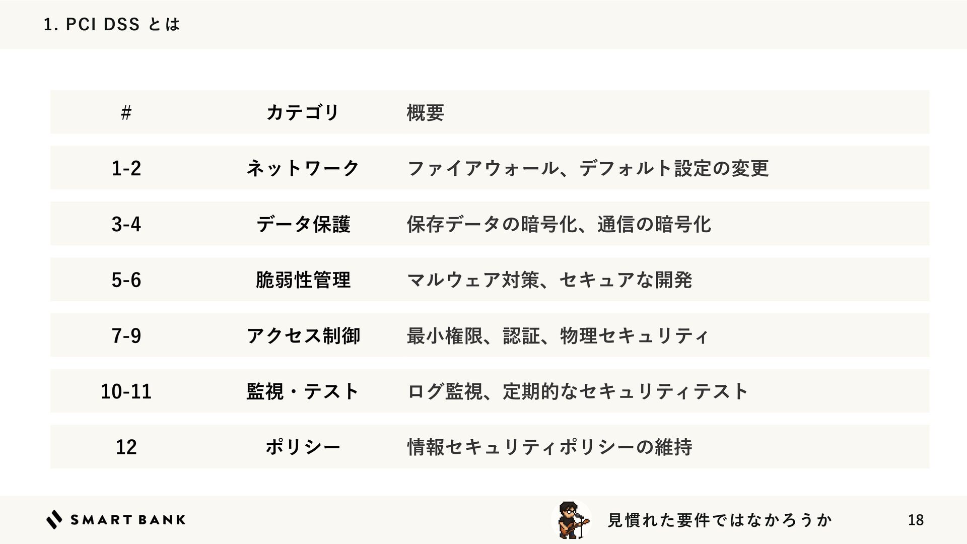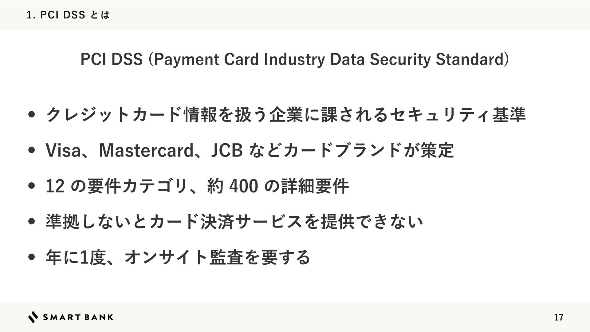 1$*%44ͱ w ΫϨδοτΧʔυใΛѻ͏اۀʹ՝͞ΕΔηΩϡϦςΟج४ w 7JTBɺ.BTUFSDBSEɺ+$#ͳͲΧʔυϒϥϯυ͕ࡦఆ w ͷཁ݅ΧςΰϦɺͷৄࡉཁ݅ w ४ڌ͠ͳ͍ͱΧʔυܾࡁαʔϏεΛఏڙͰ͖ͳ͍