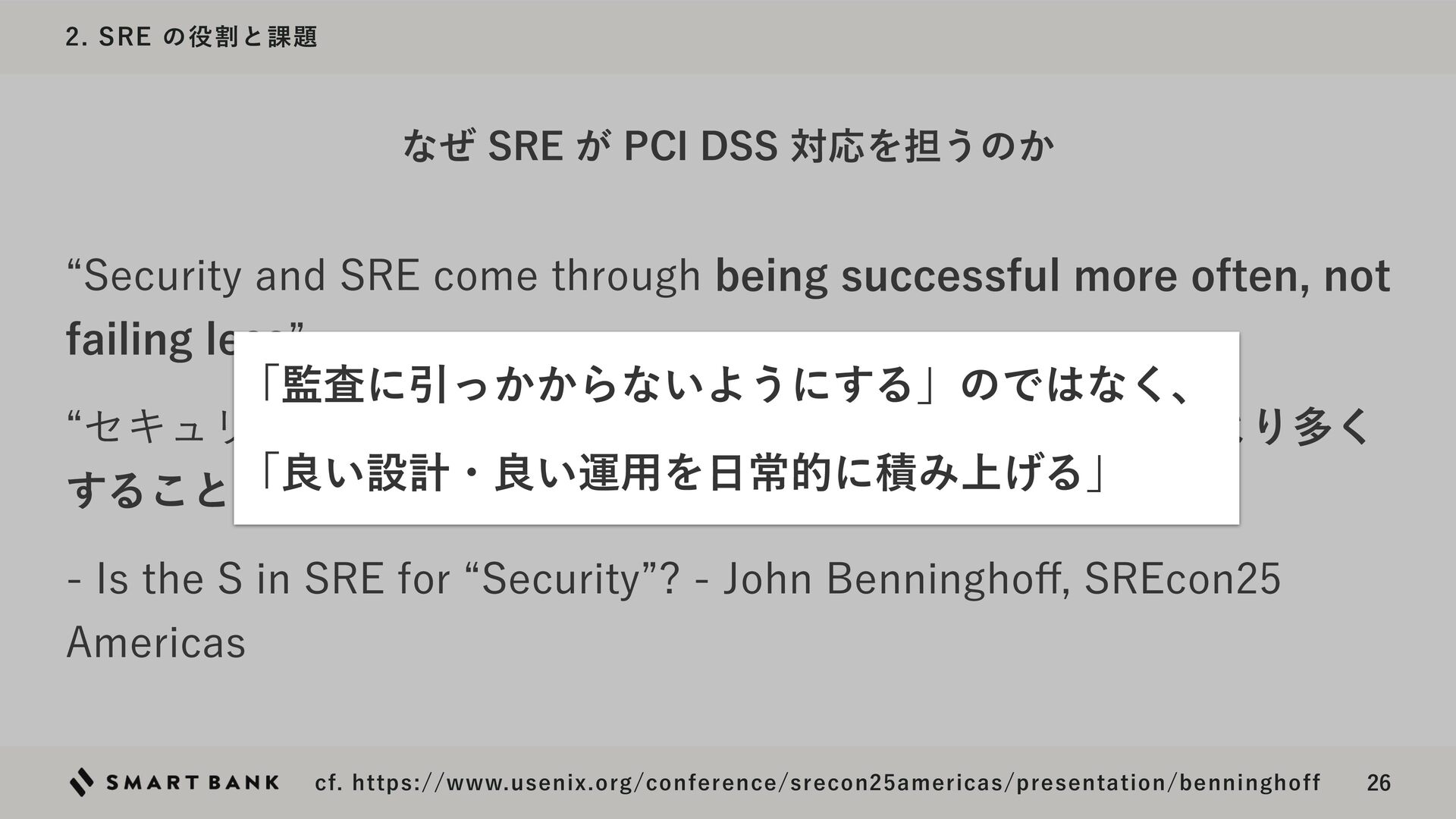クレジットカード決済基盤を支えるSRE - 厳格な監査とSRE運用の両立 / SRE Kaigi 2026 資料