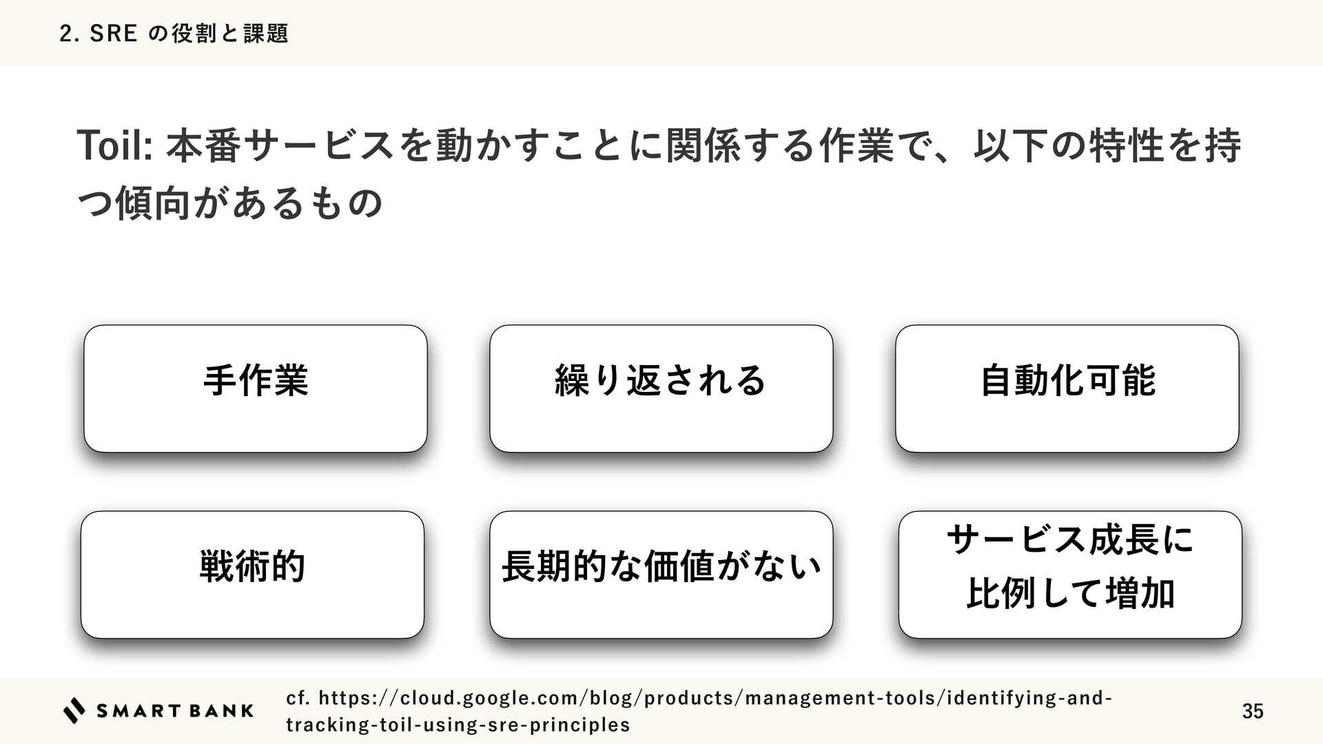 43&ͷׂͱ՝ 5PJMຊ൪αʔϏεΛಈ͔͢͜ͱʹؔ͢Δ࡞ۀͰɺҎԼͷಛੑΛ࣋ ͕ͭ͋Δͷ ख࡞ۀ ܁Γฦ͞ΕΔ ࣗಈԽՄೳ ઓज़త ظతͳՁ͕ͳ͍ αʔϏεʹ