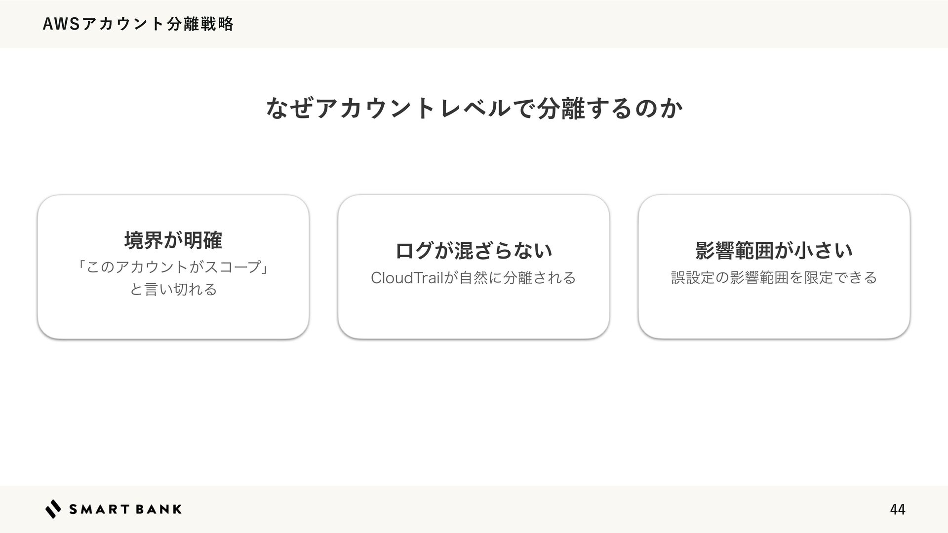 "84ΞΧϯτઓུ ͳͥΞΧϯτϨϕϧͰ͢Δͷ͔ ϩά͕ࠞ͟Βͳ͍ $MPVE5SBJM͕ࣗવʹ͞ΕΔ ڥք͕໌֬ ʮ͜ͷΞΧϯτ͕είʔϓʯ ͱݴ͍ΕΔ Өڹൣғ͕খ͍͞ ޡઃఆͷӨڹൣғΛݶఆͰ͖Δ