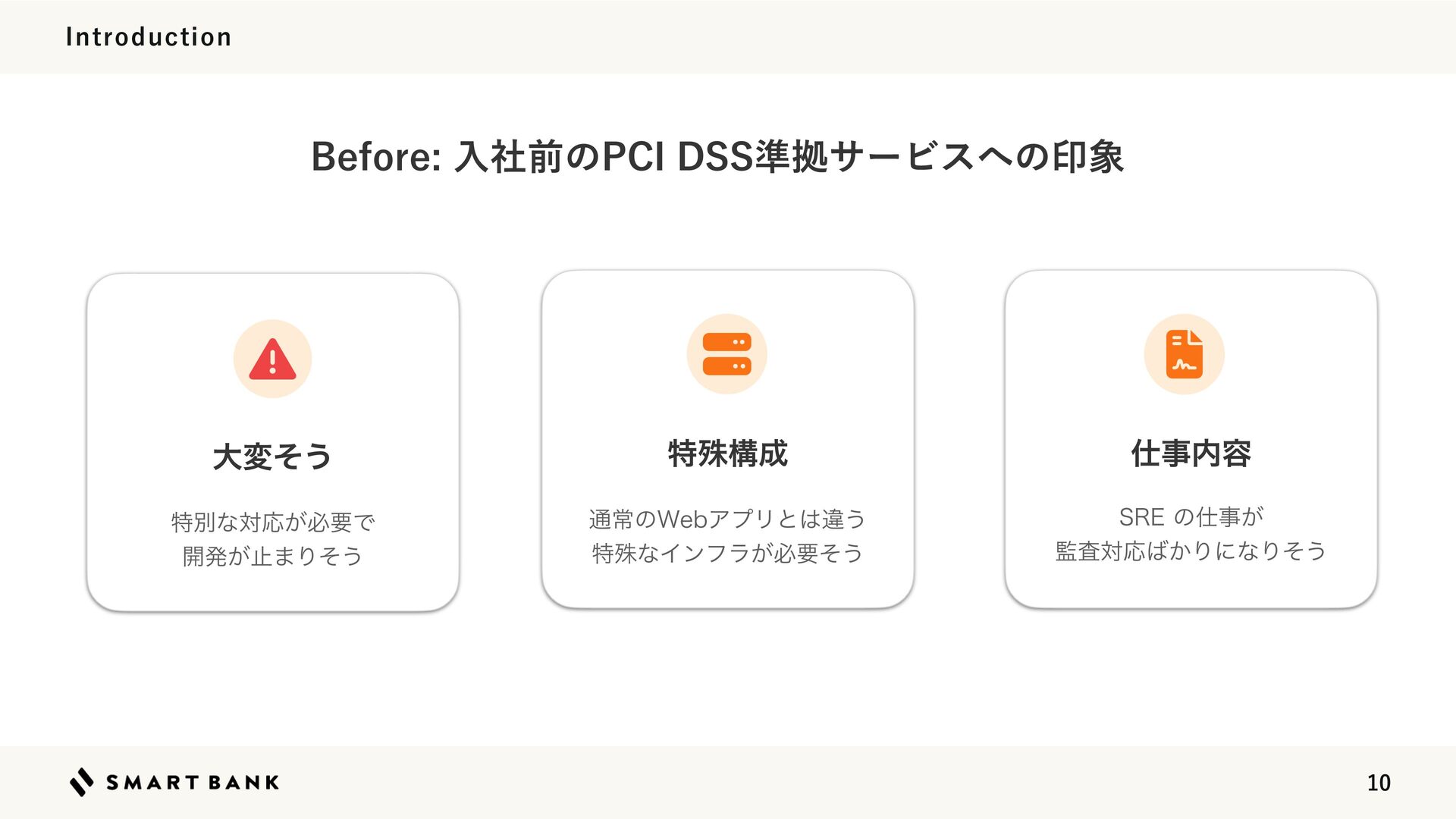 *OUSPEVDUJPO #FGPSFೖࣾલͷ1$*%44४ڌαʔϏεͷҹ େมͦ͏ ಛผͳରԠ͕ඞཁͰ ։ൃ͕ࢭ·Γͦ͏ ಛघߏ ௨ৗͷ8FCΞϓϦͱҧ͏ ಛघͳΠϯϑϥ͕ඞཁͦ͏ ࣄ༰