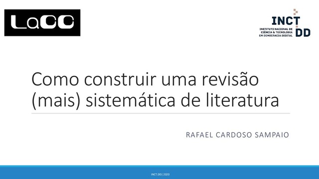 SL da. Roteiro para revisão bibliográfica sistemática: aplicação no desenvolvimento de produtos e gerenciamento de projetos. Trabalho apresentado, v. 8, 2011. CORDEIRO, Alexander Magno et al. Revisão sistemática: uma revisão narrativa. Rev. Col. Bras. Cir, v.34, n. 6, p. 428-431, 2007. COSTA, A. B.; ZOLTOWSKI, A. P. C. Como escrever um artigo de revisão sistemática. In: KOLLER, S. H., COUTO, M. C. P. P., HOHENDORFF, J. V. (orgs). Métodos de pesquisa: manual de produção científica. Porto Alegre: Penso, 2014, p. 53–67. ECHER, Isabel. A revisão de literatura na construção do trabalho científico. Revista gaúcha de enfermagem, v. 22, n. 2, p. 5-20, 2001 . FERENHOF, Helio Aisenberg; FERNANDES, Roberto Fabiano. Desmistificando a revisão de literatura como base para redação científica: método SSF. Revista ACB, v. 21, n. 3, p. 550-563, 2016. Referências BOTELHO, Louise; ALMEIDA CUNHA, Cristiano Castro; MACEDO, Marcelo. O método da revisão integrativa nos estudos organizacionais. Gestão e sociedade, v. 5, n. 11, p. 121-136, 2011. CODATO, Adriano. Aula1: introdução à revisão sistemática, 2020. CODATO, A.; LORENCETTI, M.; BITTENCOURT, M. Política da ciência na ciência da política: um estudo sobre a internacionalização da literatura sobre mulheres na América Latina. 43º Encontro da ANPOCS. Caxambu, MG 21 a 25 outubro 2019.